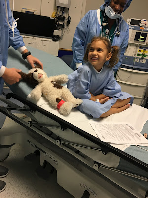 As we waited for daddy, sissy and/or the doctors to join us in our room for our Genetics consult, Belle hit her fight or flight moment, she pleaded to go home, she begged 'I will be a good girl mommy and use alllll my manners. I promise. I won't have accidents in my undies anymore, please mommy, please can we go home, I don't want to be in the hospital anymore". Her words are still ringing in my head and stabbing me in the chest. I tried so hard to explain to her that she was NOT being punished, that her accidents are at absolutely zero fault of her and if I didn't think this would make her boo-boo's better, than I would surely get us home super fast. But I know these procedures are going to make her feel so much better...... convincing a nervous 5 year old that the long-term benefit is worth the sacrifice of her short-term/now fears = impossible.